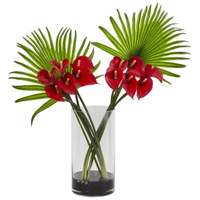 - Gorgeous combination of calla floral and green fan palms