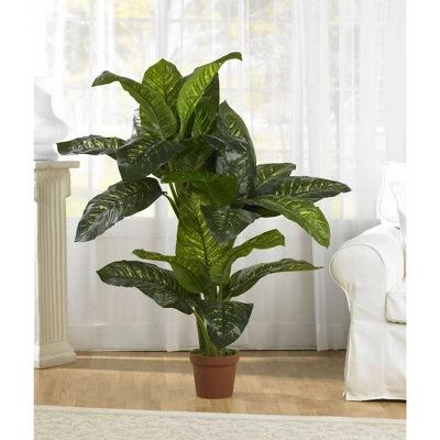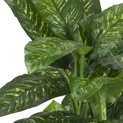 Give your decor a bold and colorful look with this Dieffenbachia Silk Plant (Real Touch) from Nearly Natural. Featuring lush leaves shooting off in every direction, this decorative accent makes the perfect entryway piece and works well to add life to a corner space. Complete with a handsome planter, perfect for both home and office decorating.
