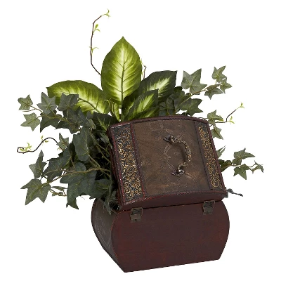 Give you decor a refreshing vibe of greenery with this African Violet, Dieffenbachia & Ivy with Chest Silk Plant from Nearly Natural. Featuring different shades of green and off-setting them with just a little floral color. Perfect for decorating an area that needs a breath of fresh air; make use of the rustic inspired vase that looks great when placed on your garden centerpiece. Made from a combination of durable materials, making this decorative accent ideal for outdoor use.