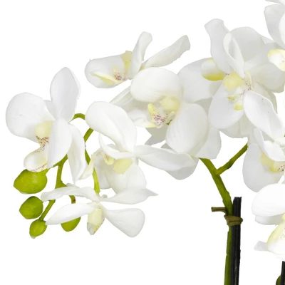 Silk arrangements are manufactured using synthetic materials, such as polyester material or plastic, and are well designed and constructed to be life-like in appearance. This item may need to be re-shaped when removed from the secure box to allow it to reach its fullest size. Your arrangement will look beautiful for years to come; simply wipe clean with a soft dry cloth when needed. Measurements are from the bottom of the container to the furthest extended leaf or branch on the tree. Width dimensions are also calculated from each furthest outstretched dimension.