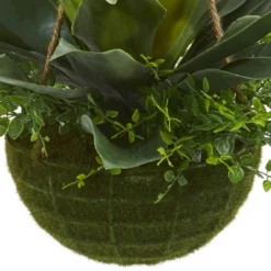 15″ X 13″ Artificial Agave And Maiden Hair Plant In Hanging Basket – Nearly Natural